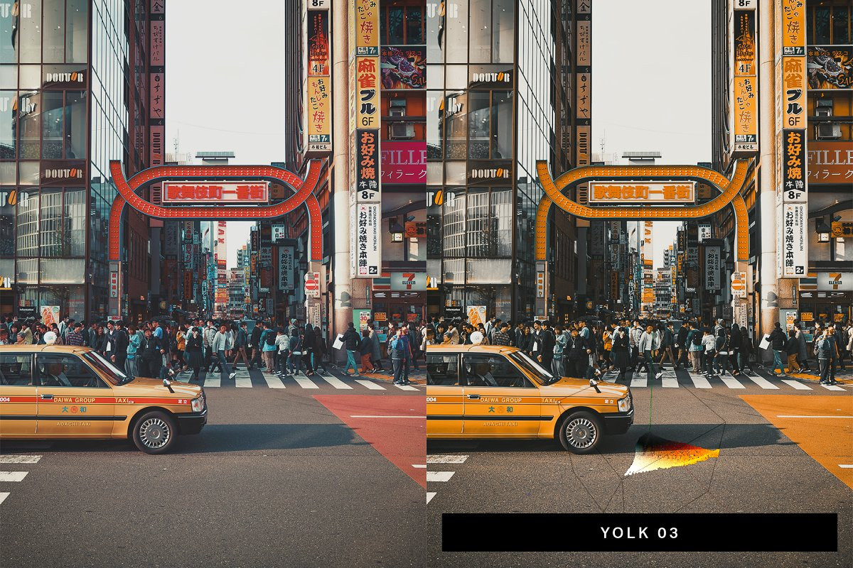 - 10 Yolk Presets – Isolated yellow-orange creates a minimalist look.